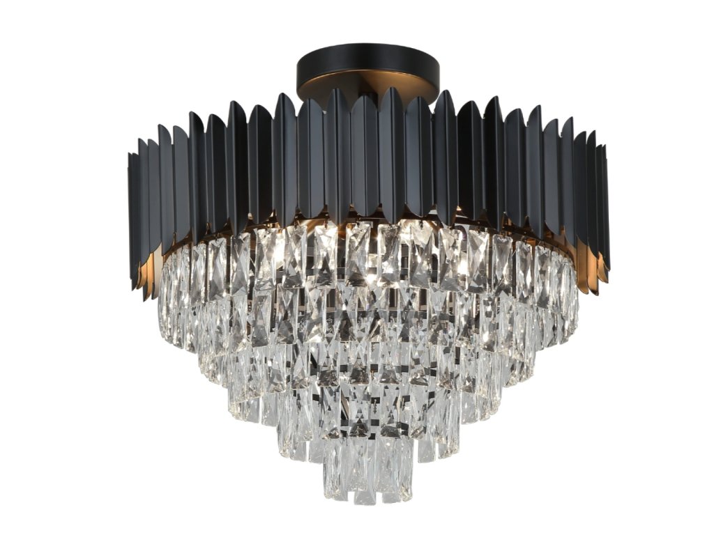 Toto výjimečné svítidlo spojuje moderní styl s precizním řemeslným zpracováním. Tělo svítidla je vyrobeno z kvalitního kovu v elegantním černém odstínu a jeho povrch je bohatě zdoben jemně broušenými křišťály, které nádherně lámou světlo a vytvářejí jedinečný světelný efekt.