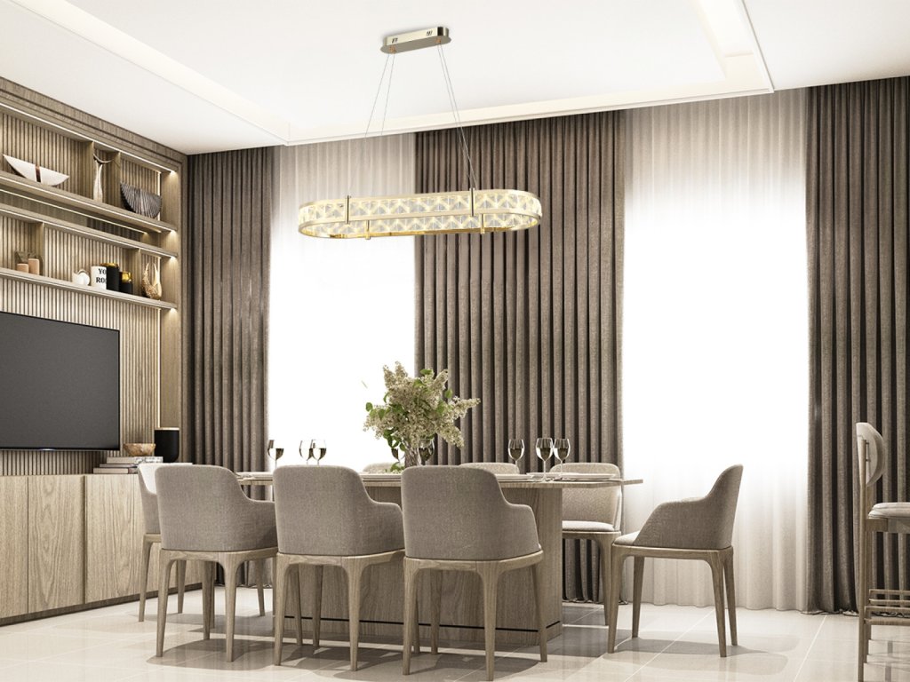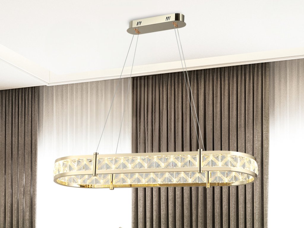 Prémiové materiály – kombinace lesklé kovové konstrukce a broušených křišťálů vytváří luxusní a sofistikovaný vzhled.