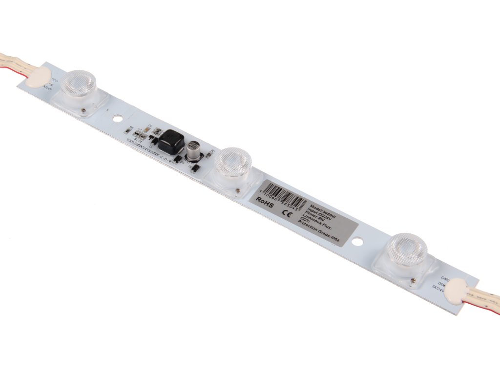 LED moduly s krytím IP64 jsou určené pro světelnou reklamu a další LED aplikace pro reklamní účely, především je určeno pro užití osvětlení světelných boxů (lightboxy). Moduly jsou osazeny čipy s boční optikou a úhlem svitu 15*45° pro nasvícení reklamních boxů, kdy jsou moduly nainstalovány z boků světelného boxu. LED moduly 3OS9W mají dlouhou životnost, vysokou svítivost a použití nová technologie vstřikování IP krytí.