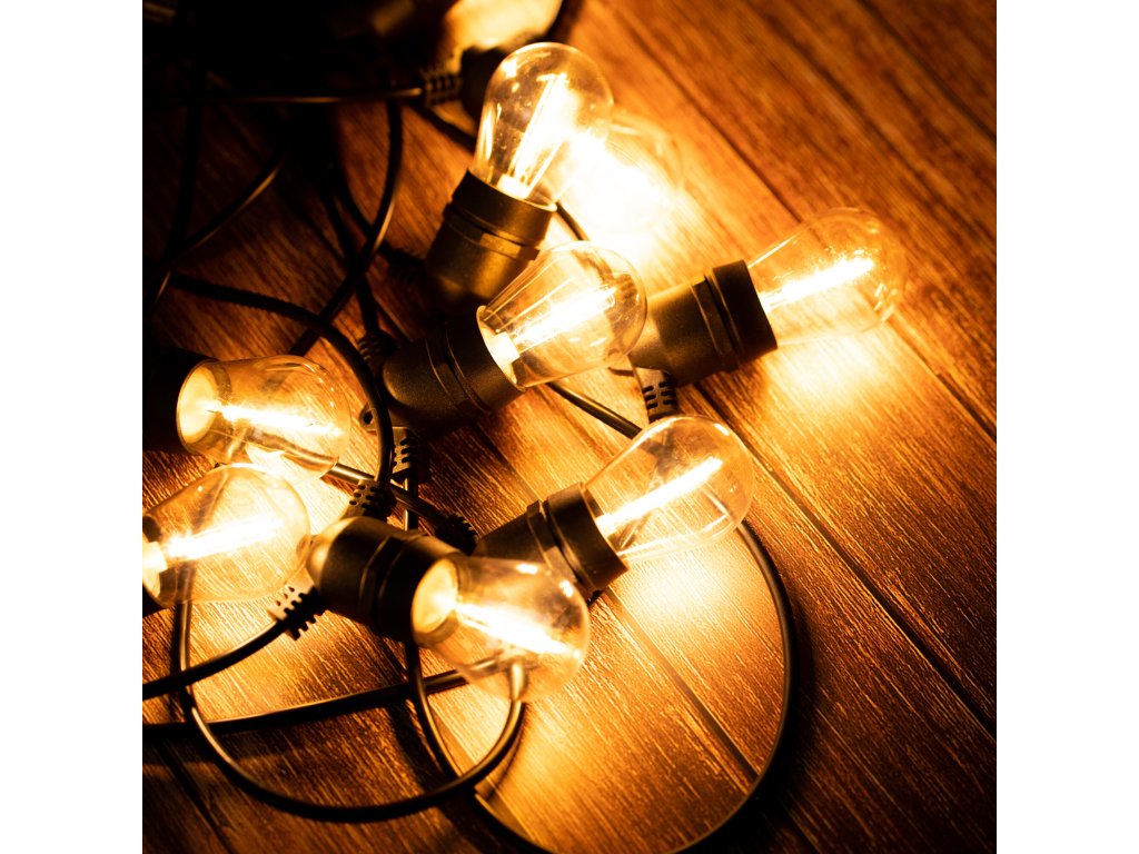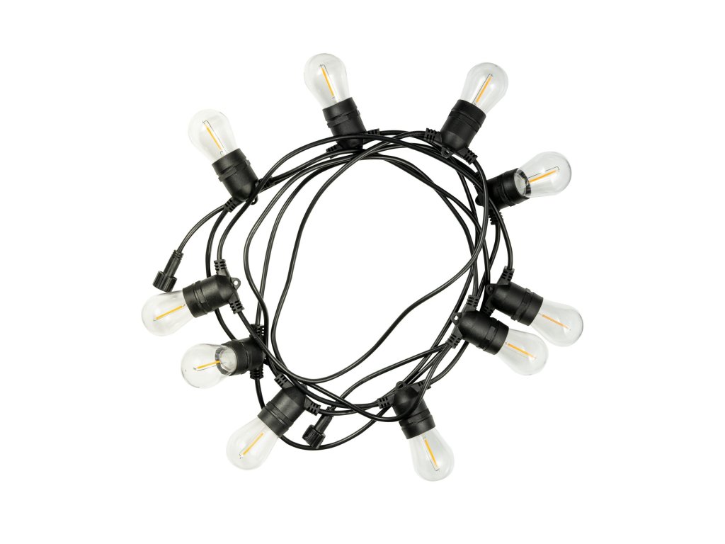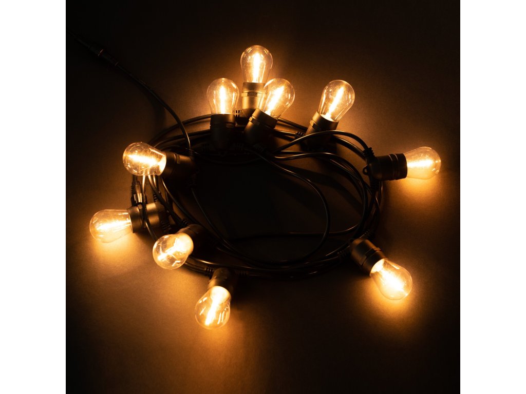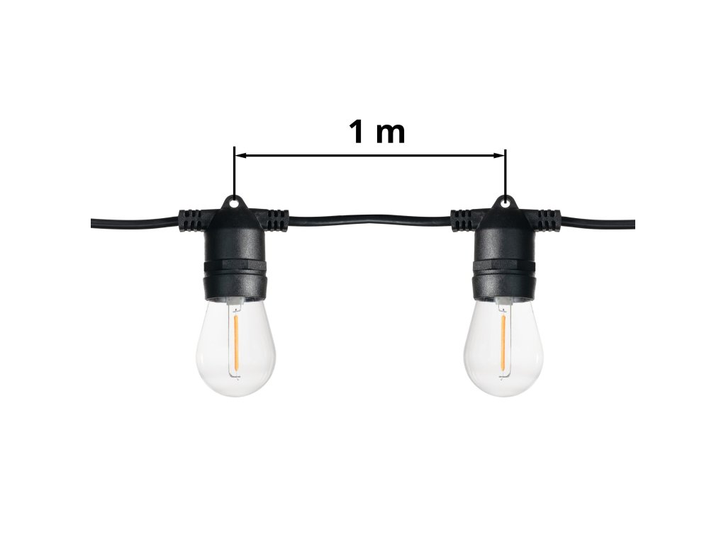 LED světelný řetěz STL5M o délce 10m je vhodný pro vnitřní i venkovní použití jako dekorační osvětlení budov, zahrad, restaurací a dalších instalací. Tímto LED dekoračním řetězem lze osvětlit například části zahrady a ozvláštnit venkovní posezení nebo terasu, ale také ho můžete použít při různých společenských akcích jako svatební osvětlení, osvětlení narozeninových oslav a u dalších příležitostí. Na řetězu je umístěno 10 objímek včetně žárovek, zároveň je v balení 1 náhradní žárovka. Objímky jsou od sebe vzdálené 1 metr.