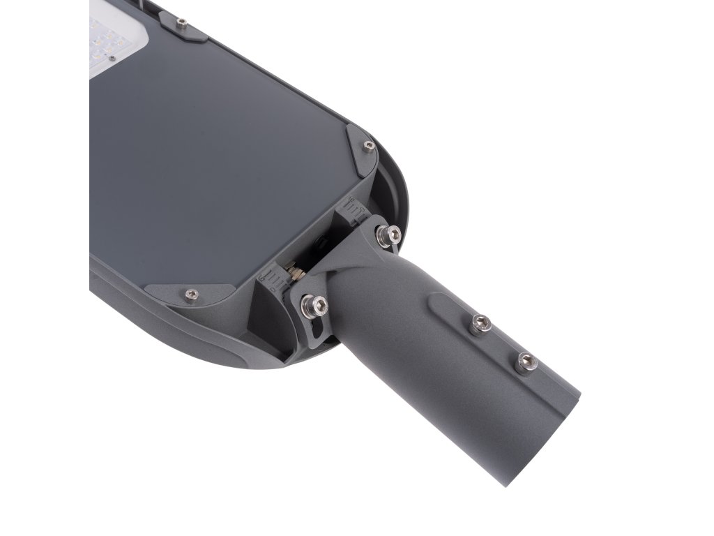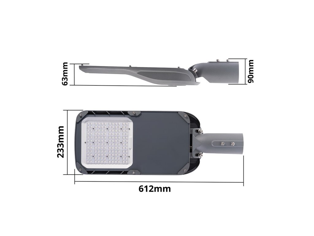 LED pouliční svítidlo VOM5 je energeticky úsporné svítidlo s vysokou účinností od 120lm/W, navržené pro veřejné osvětlení a s IP krytím IP65 pro zajištění odolnosti vůči povětrnostním vlivům. Na toto svítidlo nabízíme 5letou záruku. Svítidlo je také vybaveno 10kV přepěťovou ochranou (SURGE PROTECTION) pro ochranu proti výkyvům napětí. Součástí svítidla je kloub, který lze nechat ve vodorovné poloze, nebo otočit až o 90° na jednu stranu (celkem dohromady 180°) a instalovat svítidlo na svislé výložníky nebo stožáry.