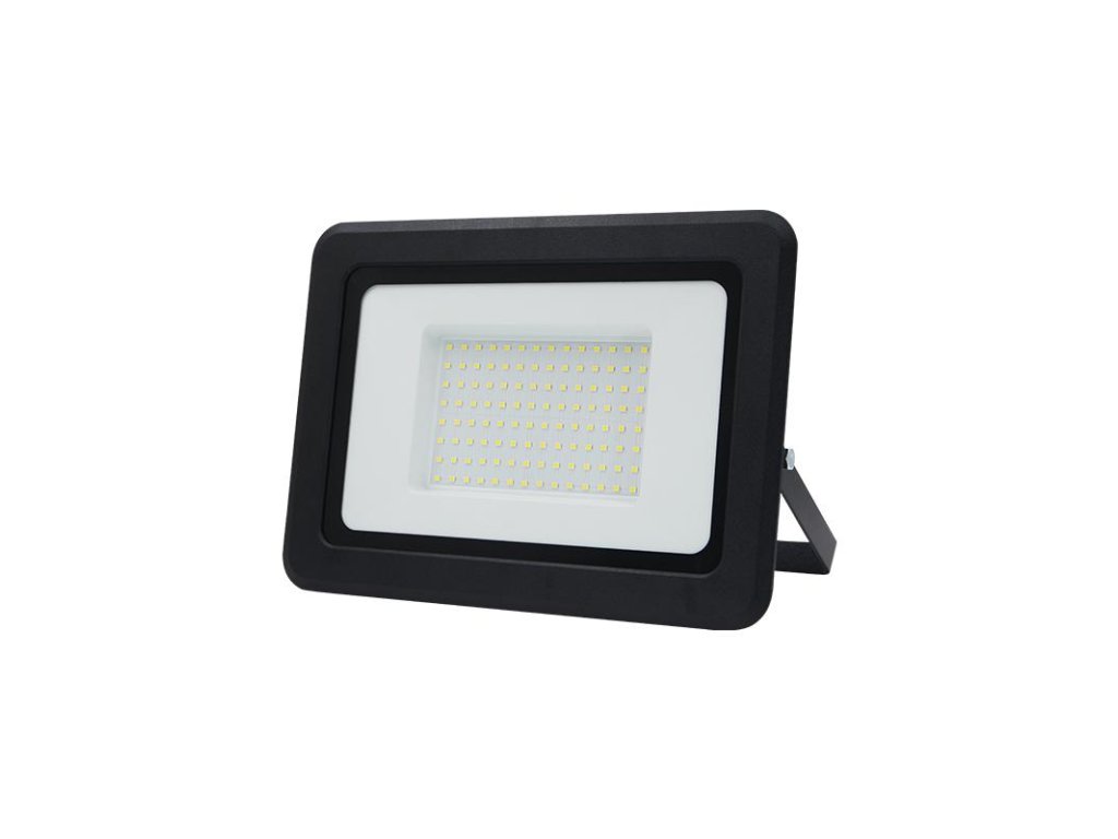 LED reflektor LF0025 v černé barvě, s výkonem 100W, svítivostí 8000Lm a barvou světla 4000K, disponuje držákem a vysoce kvalitním LED čipem.