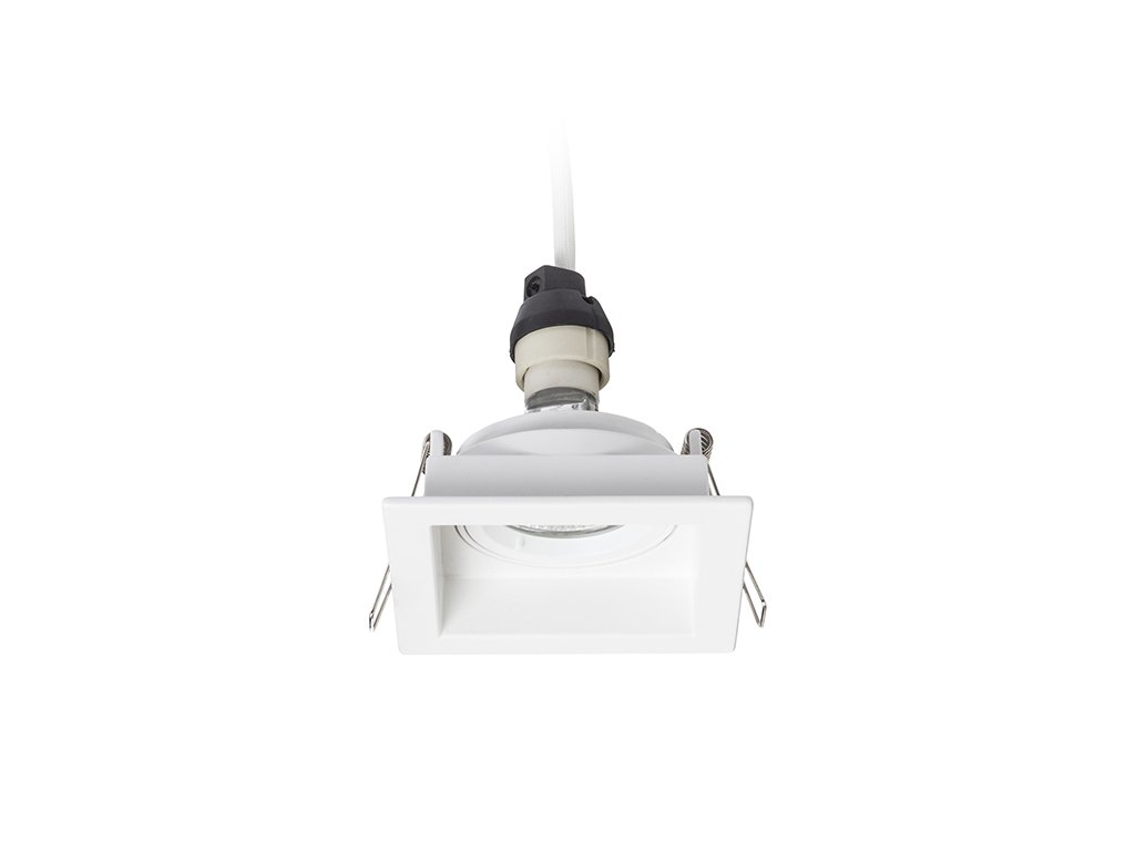 Čtvercové zápustné svítidlo pro montáž do sádrokartonových stropů s možností naklopení na žárovku s paticí GU10.Doplňkové parametry