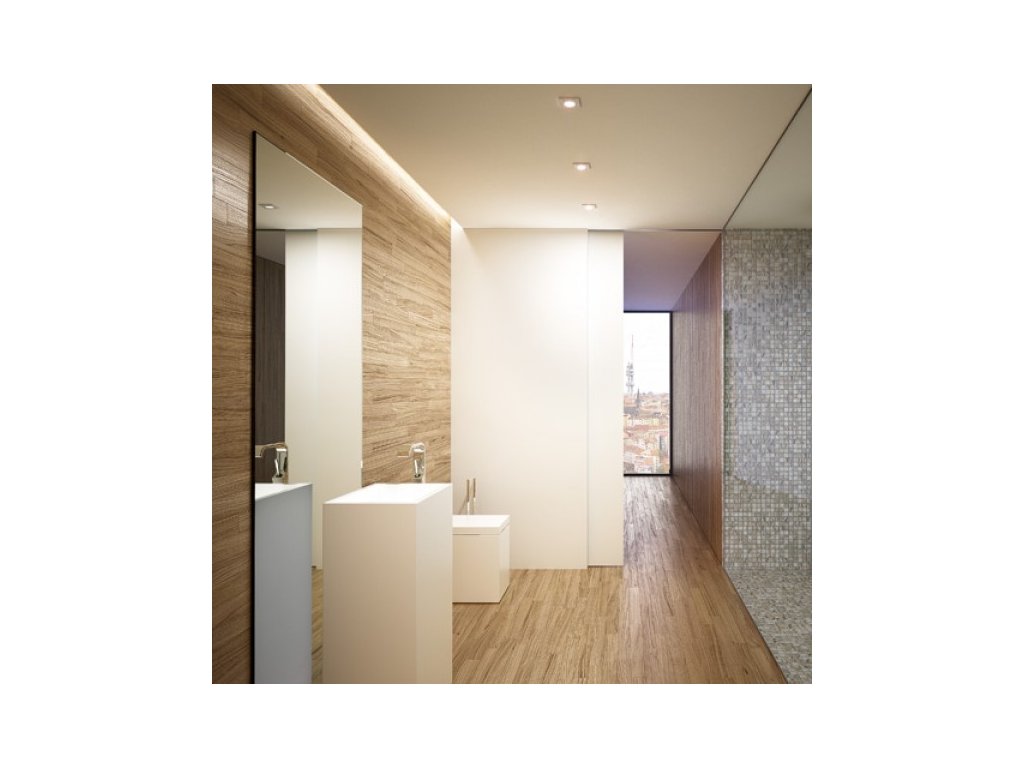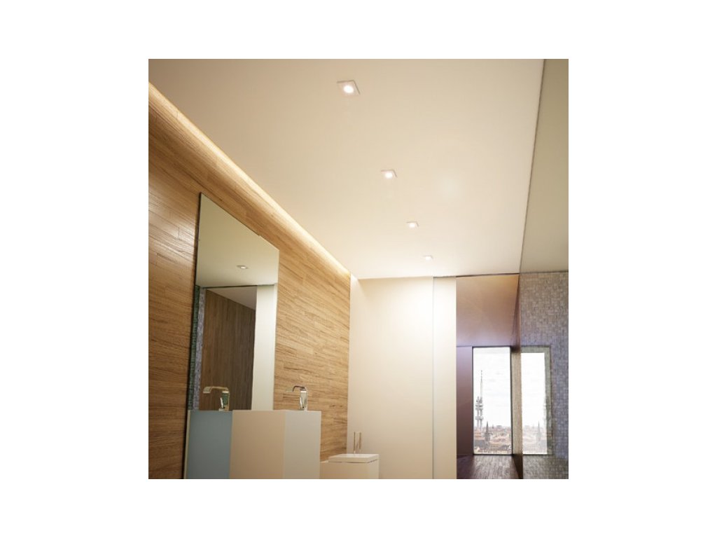 Zápustné svítidlo s rámečkem z česaného hliníku. Průzor svítidla je krytý částěčně satinovaným sklem. Vhodné do vlhkého prostředí.Doplňkové parametry