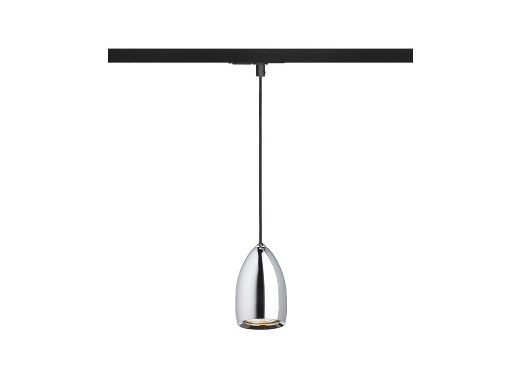 Závěsné svítidlo se stínidlem z chromu nebo matného niklu. Černý textilní kabel je zakončen adaptérem do jednookruhové lišty.Doplňkové parametry