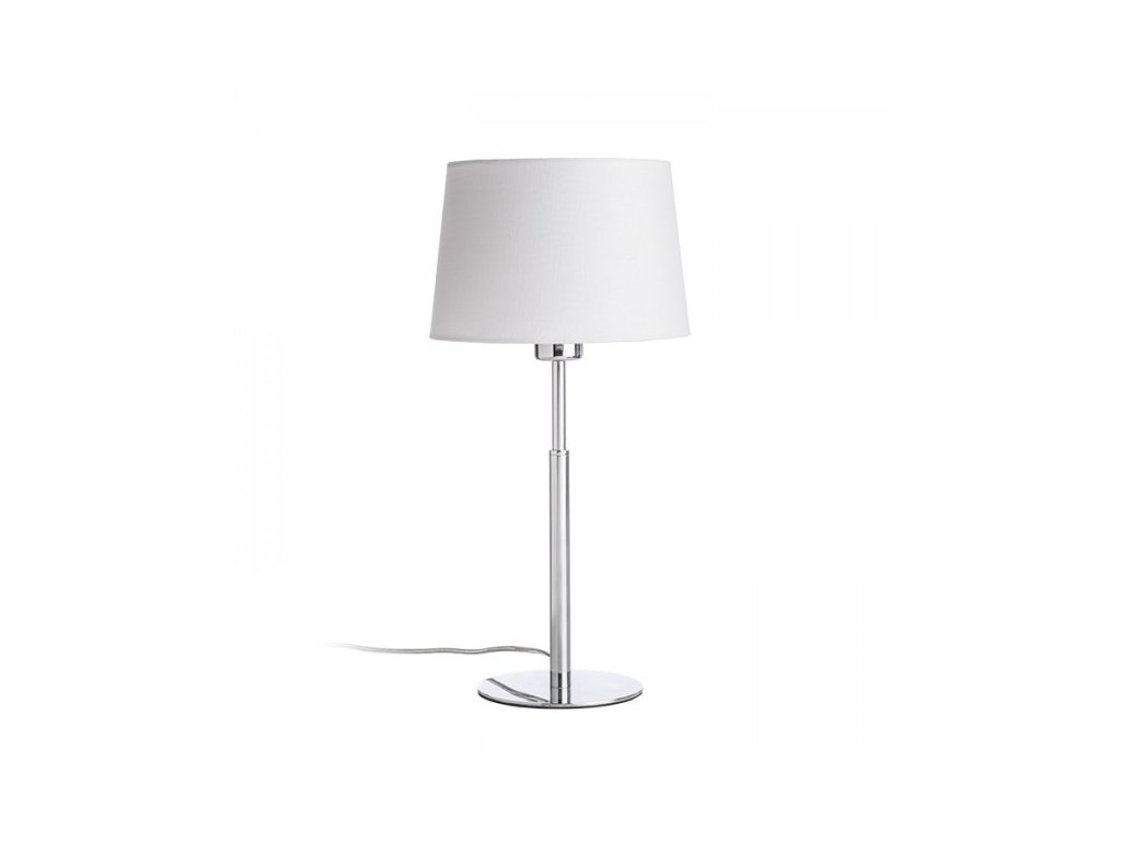 Stolní svítidlo s bílým strukturovaným textilním stínidlem a chromovým podstavcem.Doplňkové parametry