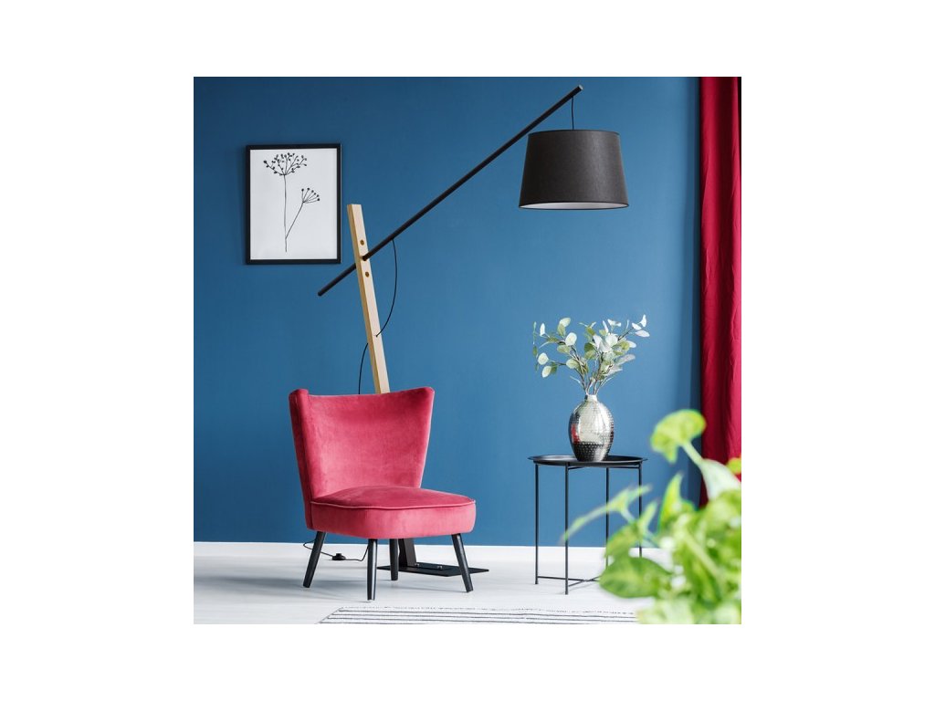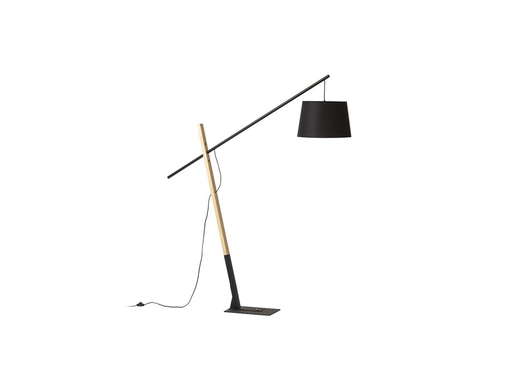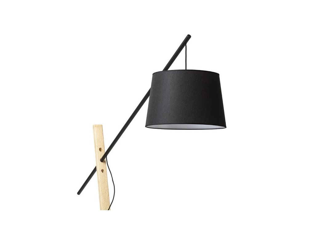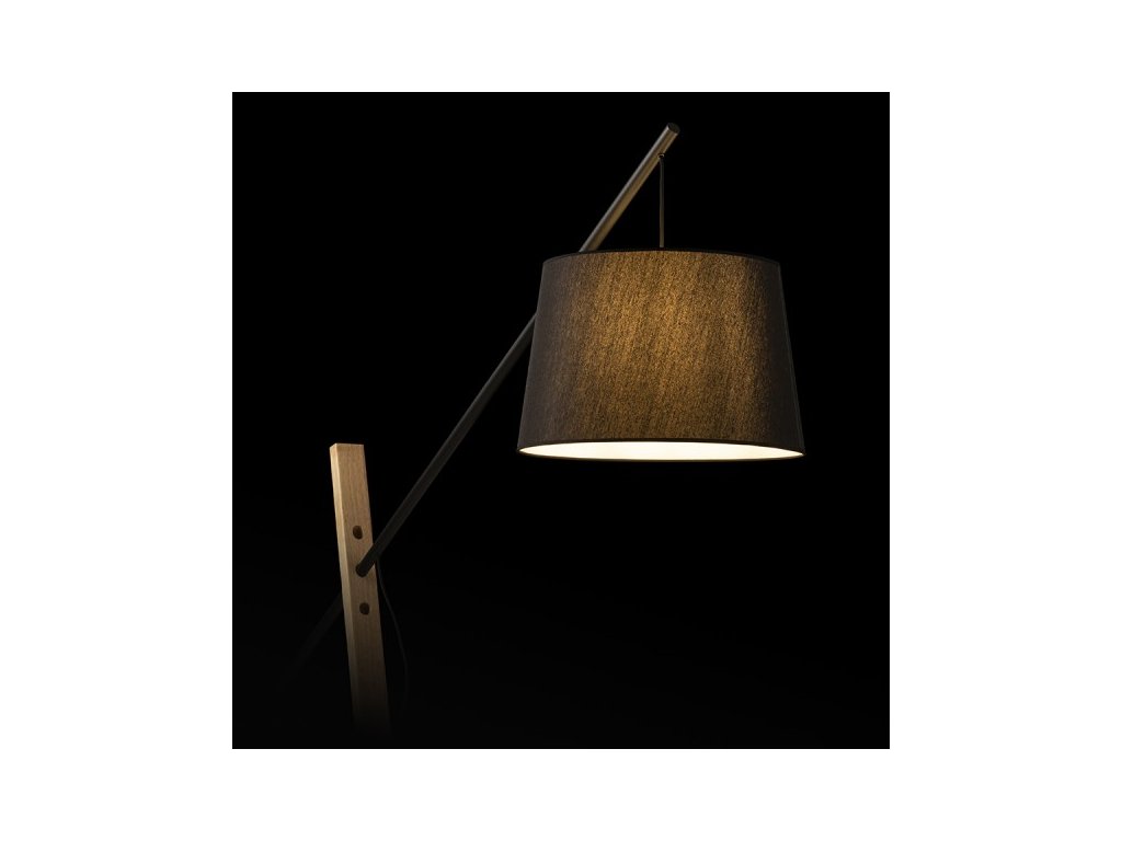 Masivní designová stojanová lampa vhodná do prostorných interiérů. Kombinace dřeva, kovu a textilního stínidla.Doplňkové parametry