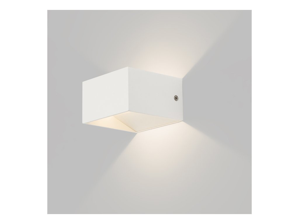 Hranaté bíle lakované hliníkové svítidlo osazené výkonou LED diodou, pro svícení UP/DOWN.Doplňkové parametry