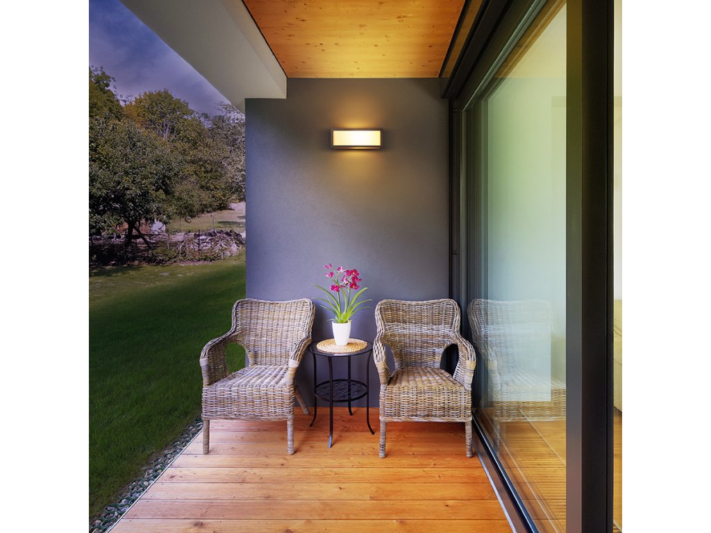 Nástěnné venkovní svítidlo pro úsporný zdroj E27 s prostorovým svícením.Doplňkové parametry