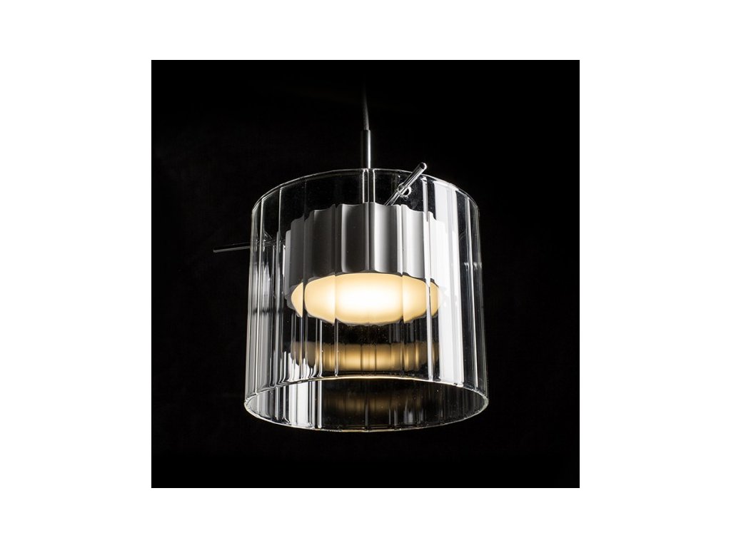 Závěsné LED svítidlo s ozubeným hliníkovým reflektorem krytým čirým skleněným stínidlem.Doplňkové parametry