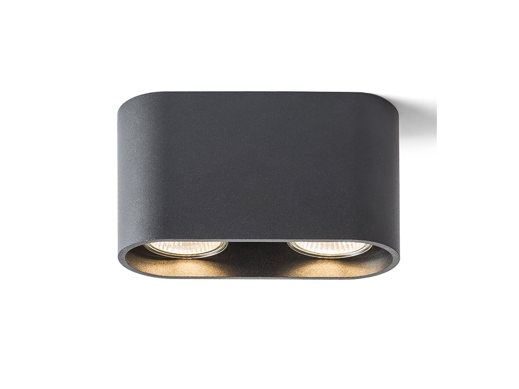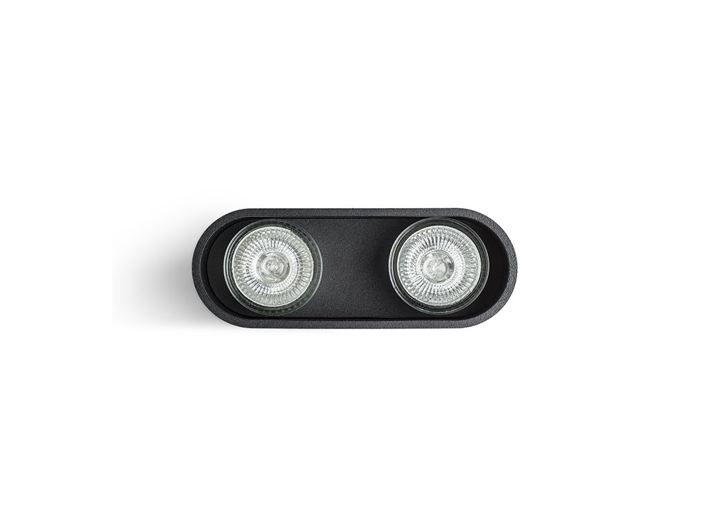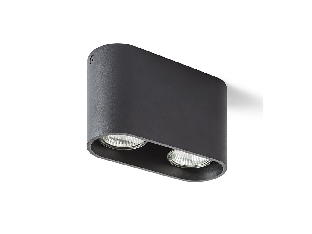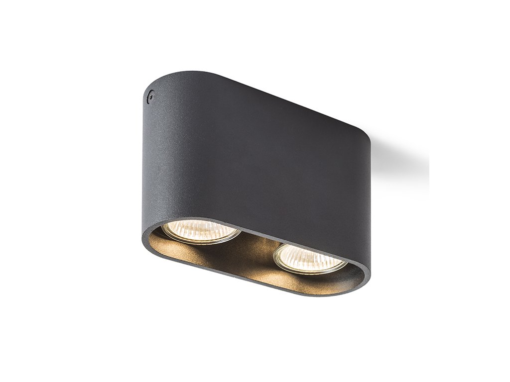 Stropní oválné svítidlo na dvě reflektorové žárovky s paticí GU10 bez možnosti naklopení.Doplňkové parametry