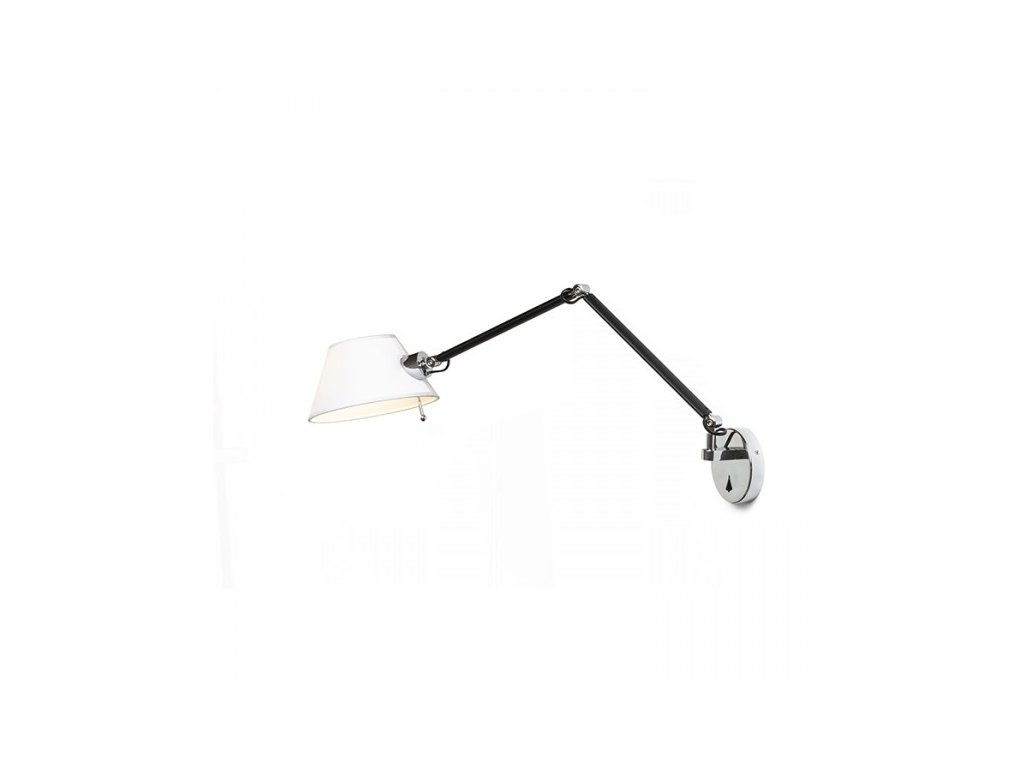 Nástěnná dvouramenná kovová lampička s textilním stínidlem.Doplňkové parametry