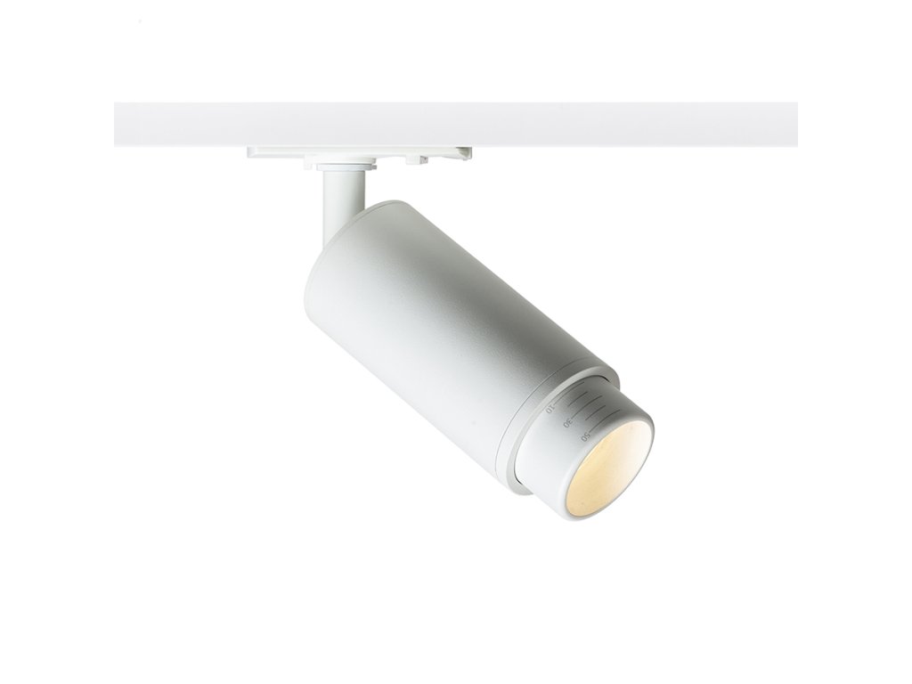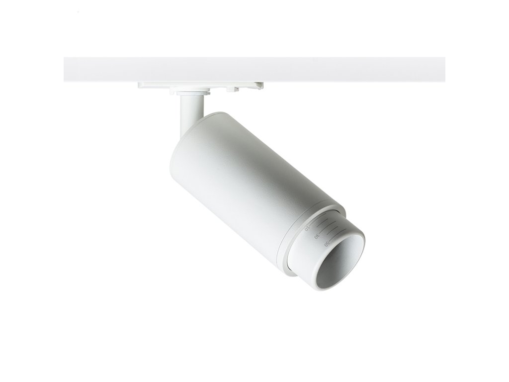 Válcové svítidlo pro jednookruhovou lištu s možností úpravy světelného kuželu pomocí zoom systému 10-50°. Svítidlo je vhodné pro LED světelné zdroje s paticí GU10. Do svítidla používejte světelné zdroje s úhlem vyzařování 120°, aby jste předešli nežádoucím stínům.Doplňkové parametry