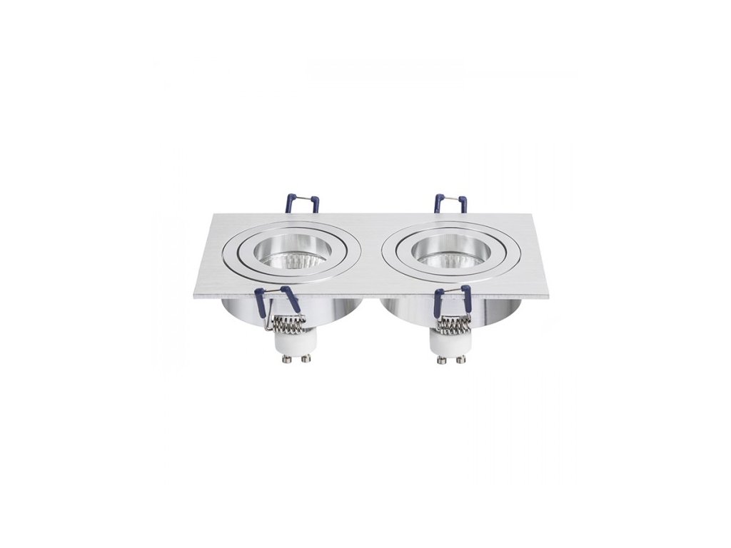 Obdélníkové dvojité zápustné svítidlo v hliníkovém provedení s přírodní povrchovou úpravou nebo lakované verzi. Pro žárovky GU10 s možností naklopení.Doplňkové parametry