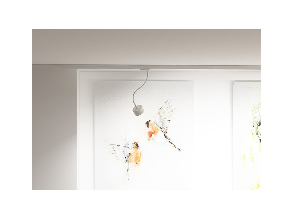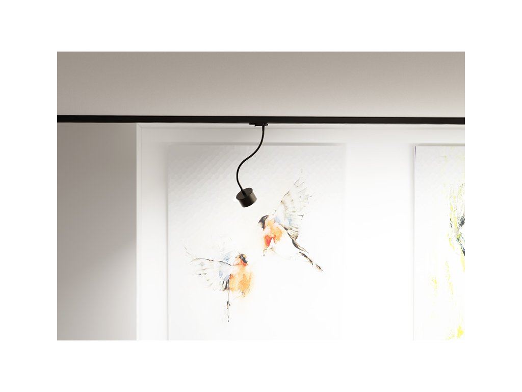 Náklopné svítidlo s adaptérem pro tříokruhovou lištu na ohebném husím krku ve třech barevných provedeních. Pro úsporné LED zdroje s paticí GX53.Doplňkové parametry