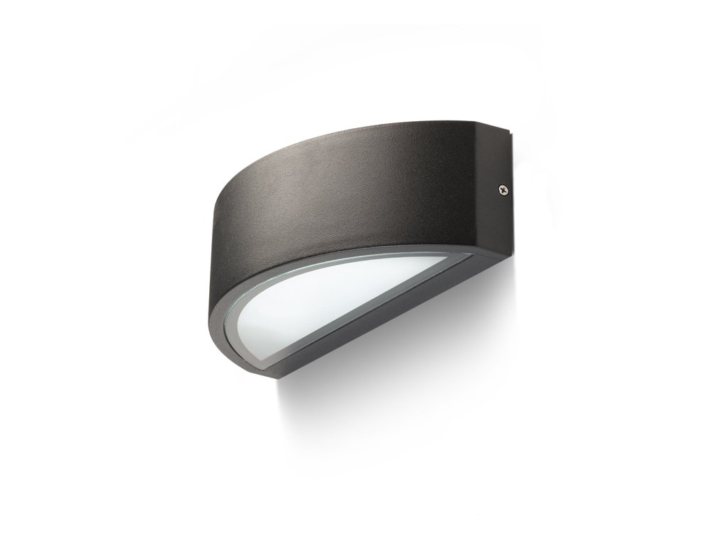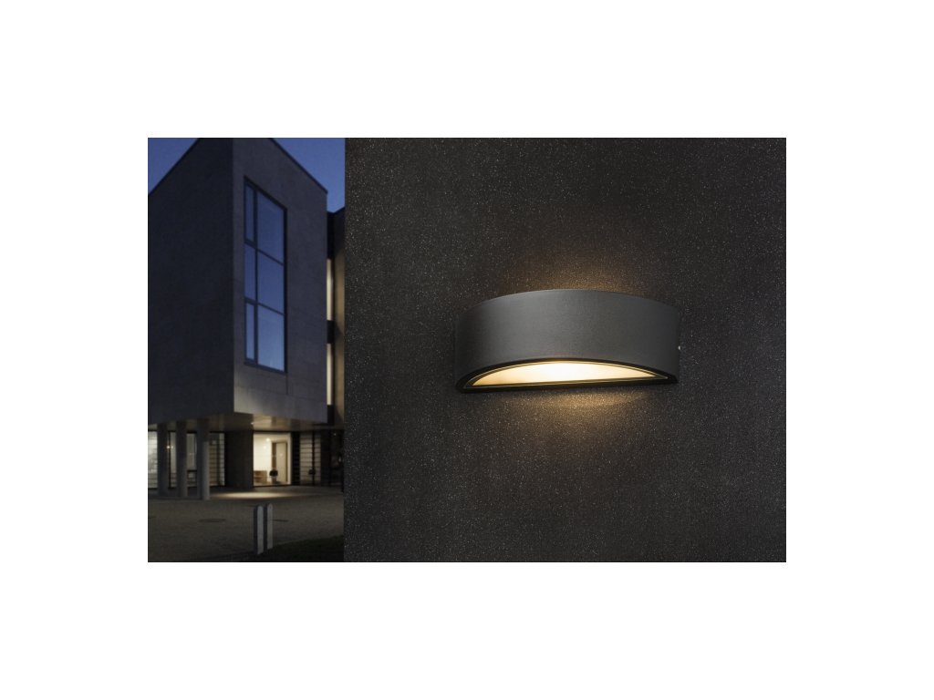 Nástěnné venkovní svítidlo z tlakově litého hliníku ve třech barevných variantách. Včetně kovové krytky pro zamezení svícení směrem nahoru.Doplňkové parametry