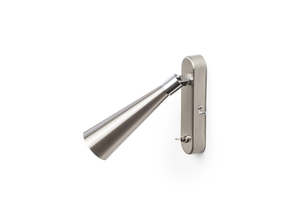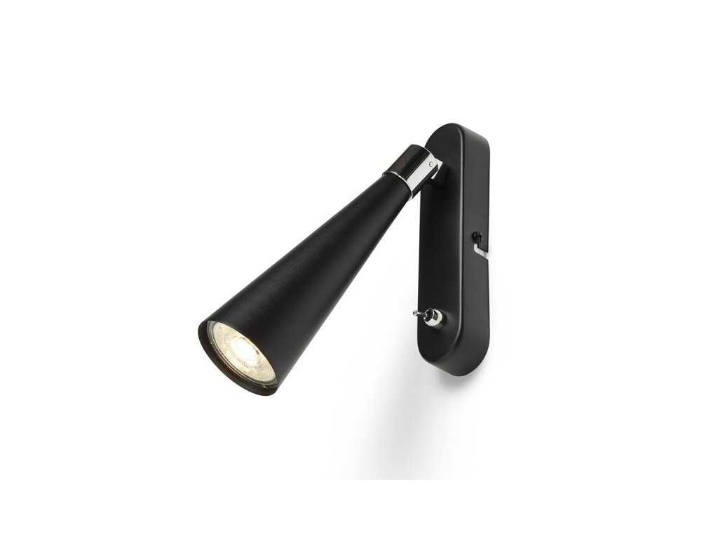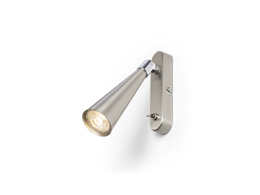 Nástěnné svítidlo s kónickým reflektorem pro LED žárovku s paticí GU10, páčkový vypínač je umístěný na základně.Doplňkové parametry