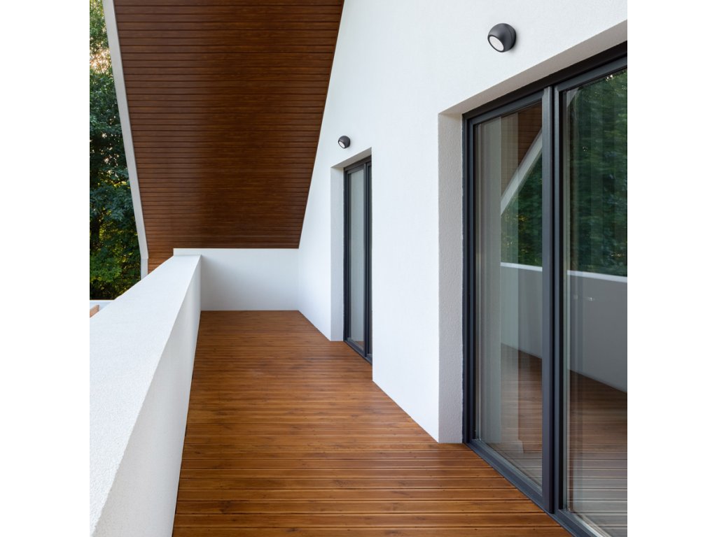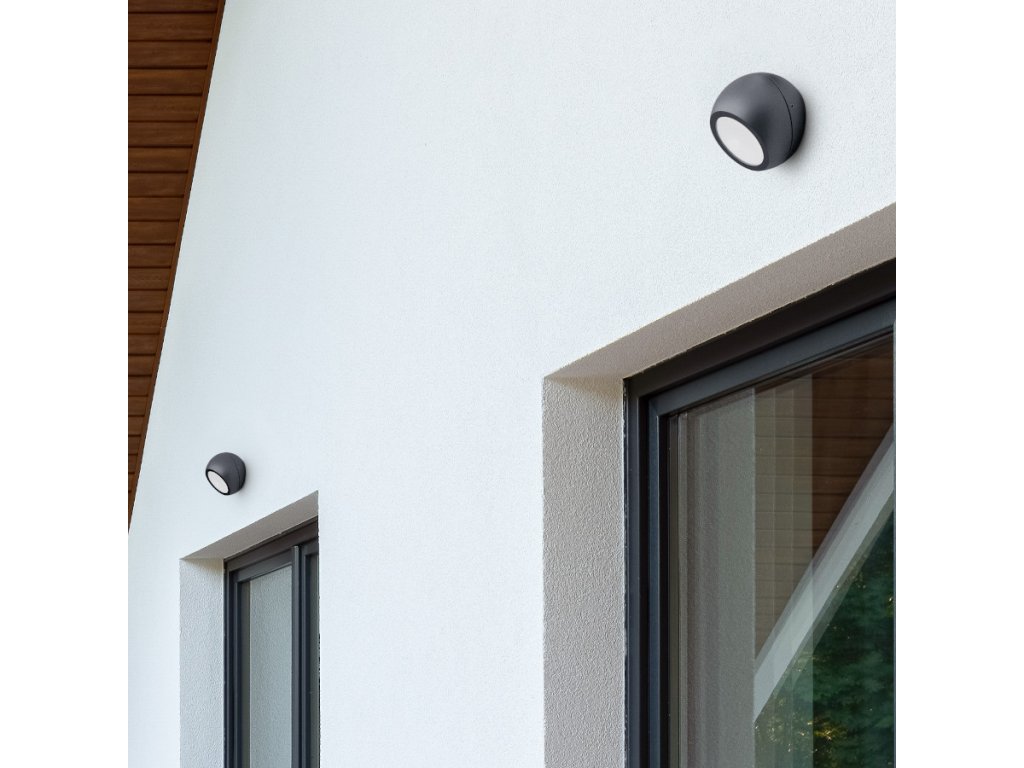 Nástěnné zakulacené LED svítidlo se svícením šikmo dolů, vhodné pro osvětlení vchodů.Doplňkové parametry