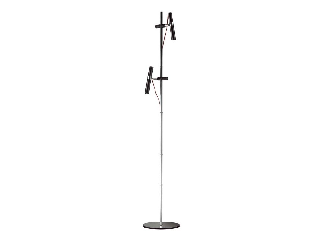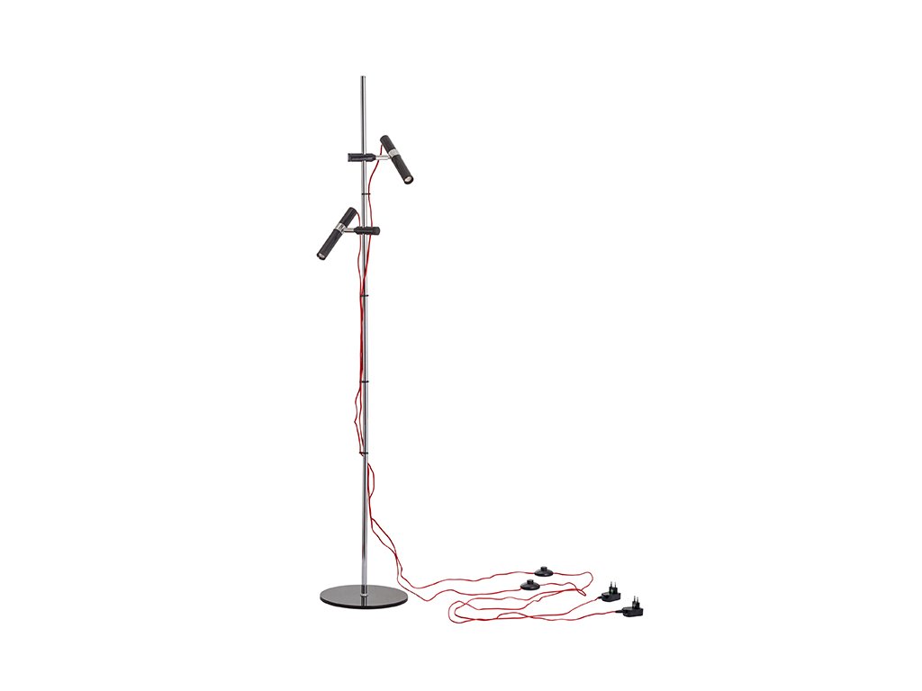 Designová chromová stojanová lampa se dvěmi černými posuvnými LED reflektory, které jsou samostatně ovládány vypínači na červených přívodních kabelech. Oba kabely jsou zakončeny adaptéry do zásuvky.Doplňkové parametry