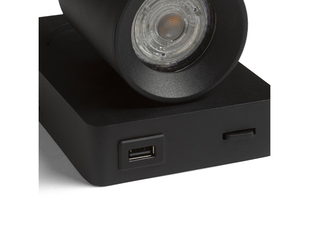 Nástěnné lakované svítidlo s náklopným reflektorem pro světelné zdroje s paticí GU10. Svítidlo má do základny integrovaný USB port vhodný pro nabíjení například telefonu.Doplňkové parametry