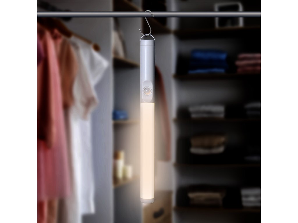 Praktické LED světlo se zabudovaným pohybovým senzorem (PIR) je ideální pro osvětlení skříní, šatníků nebo technických prostor. Automaticky se rozsvítí při detekci pohybu a po 30 sekundách nečinnosti se opět vypne. Příjemné teplé bílé světlo (3000K) s výkonem 200 lm zajišťuje výbornou viditelnost.