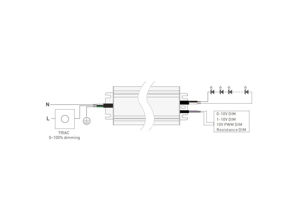 - na vstupu pomocí TRIAC stmívače (průběh a rozmezí stmívání u triakových stmívačů závisí na modelu stmívače)