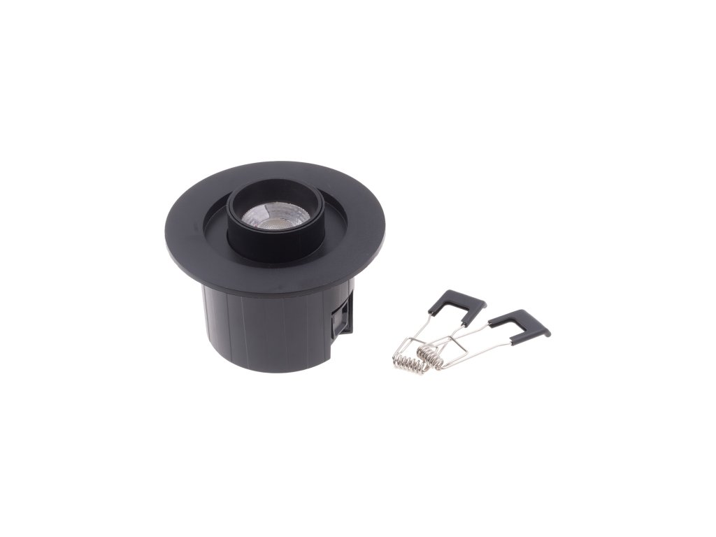 Stropní bodové nebo podhledové CCT LED svítidlo v černé barvě s krytím IP44 vhodně pro instalaci na strop v interiérech jako jsou kuchyně, obývací pokoje, koupelny a podobně, ale také pro osvětlení venkovních prostor. Svítidlo můžete také nainstalovat do podhledů pomocí pružin v balení. Světlo má index oslnění UGR<19.