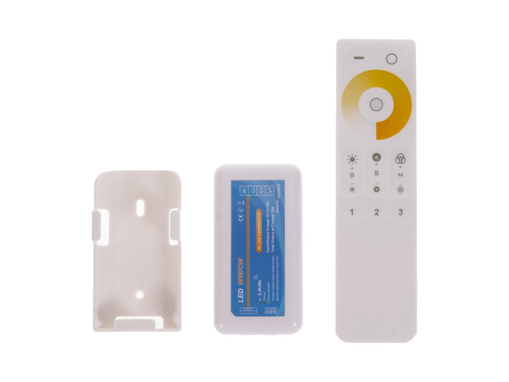 CCT LED ovladač 3kanálový RF (radiofrekvenční) pro dálkové ovládání intensity jasu CCT LED pásků, modulů a dalších 12-24V CCT LED produktů. Přijímač může být ukrytý (za zdí, sádrokartónem či ve skříni), není nutná přímá viditelnost přijímače pro ovladač. LED ovladač Largo umožňuje ovládat až 3 zóny samostatně. Pokud chcete ovládat více zón, je nutné zakoupit další sadu ovladače Largo, u tohoto modelu se přijímače samostatně neprodávají.