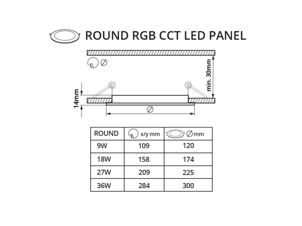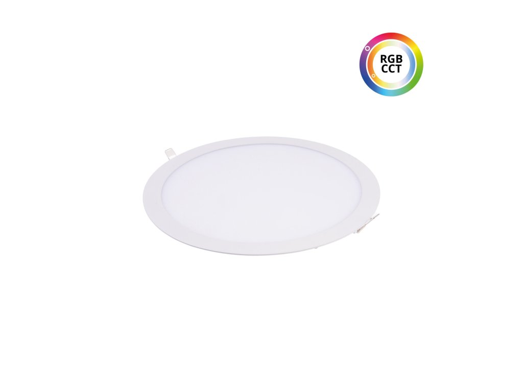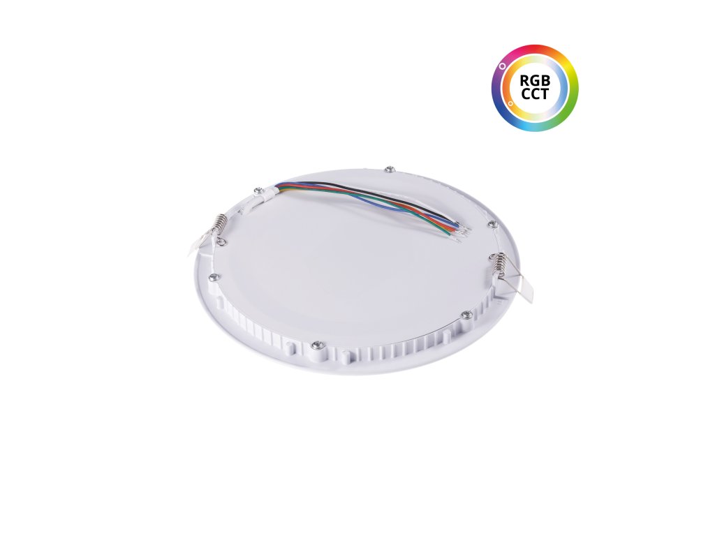 Vestavný kulatý bílý RGBCCT LED panel 24V 18W určený pro instalaci do podhledu. Díky bočnímu nasvětlování nejsou jednotlivé LEDky při rozsvícení viditelné a lze použít i ultratenký design. LED panel díky RGBCCT provedení Vám umožňuje nastavit barvu bílého světla v rozmezí od 2000K do 6000K a můžete nastavit bílé světlo od teplých žlutých odstínů bílé přes denní až po studené bílé světlo. Zároveň lze nastavit také barvy z RGB spektra (červená, zelená, modrá a jejich kombinace). Napětí 24V umožňuje tyto LED panely taktéž instalovat na místa, kde potřebujete nízké napětí. Zároveň 24V napětí je často využíváno v chytrých domácnostech jako je LOXONE či jiné obdobné systémy.